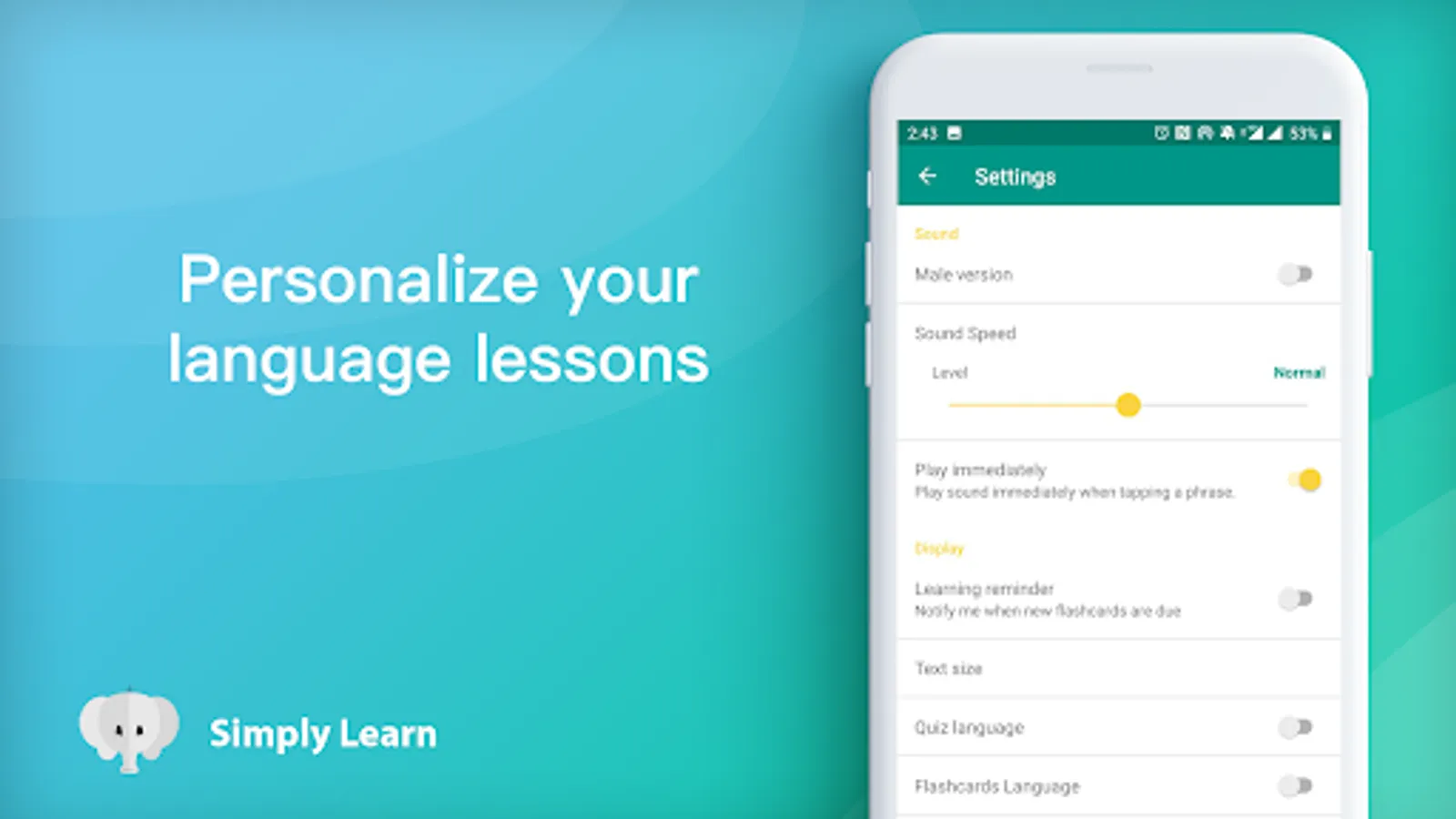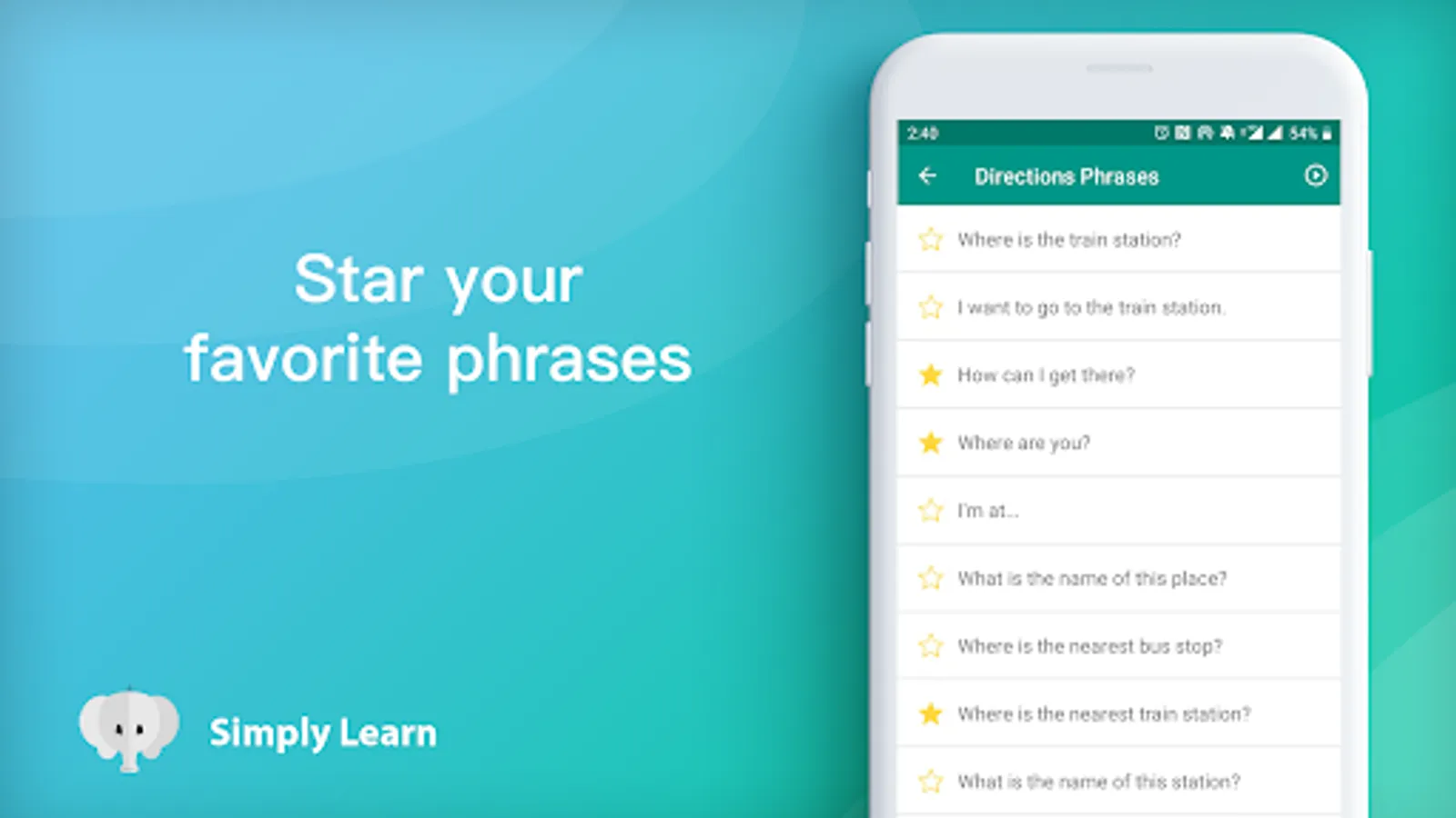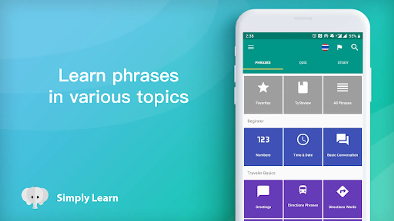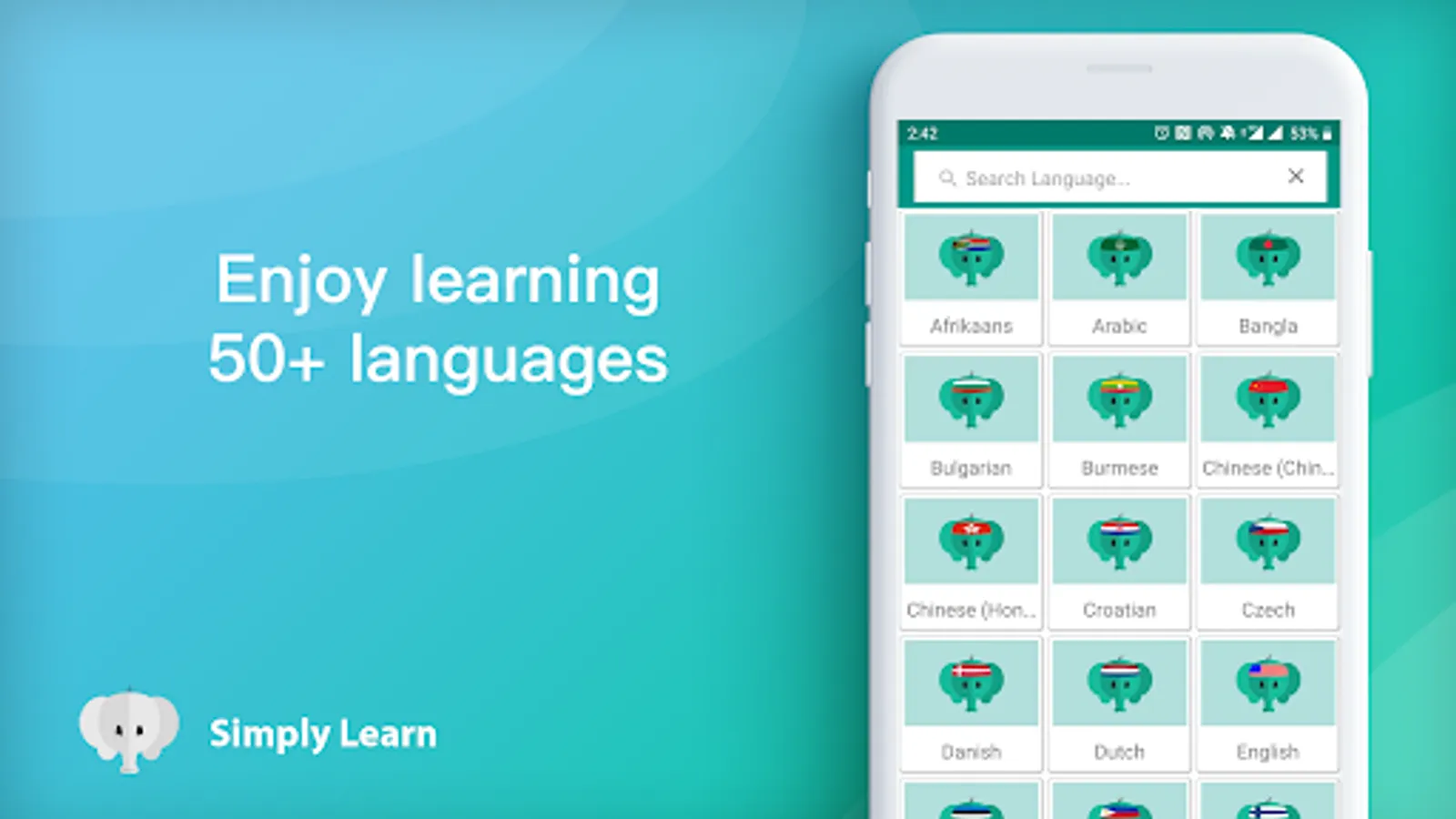 ★★★ Learn 50 native languages when travelling around the world 🌏★★★Simply Learn Languages App is a FREE 🆓 language app that will assist you to speak any of 50 languages quickly and effectively ⚡.Thai - Japanese - Korean - Chinese - Vietnamese - Spanish - German - Tagalog - Khmer - Russian - Afrikaans - Arabic - Bengali - Bulgarian - Burmese - Cantonese - Croatian - Czech - Danish - Dutch - English - Estonian - Farsi - Finnish - French - Greek - Hebrew - Hindi - Hokkien - Hungarian - Indonesian - Italian - Kannada - Lao - Lithuanian - Malaysian - Mexican - Mongolian - Nepali - Norwegian - Polish - Portuguese - Punjabi - Romanian - Serbian - Slovak - Swahili - Swedish - Tamil - Turkish - Ukrainian - Urdu - Brazilian PortugueseAll common phrases and words are presented to you in both phonetic and original writing. They are recorded by native speakers from 50 countries 👧🏻.Save your favorite phrases and words to review them without fuss ❤️.Study your vocabulary with flashcards using the spaced repetition technique.Test your knowledge with fun language quiz and review your score.★★★ Survive when travelling around the world 🗺️🌏 ★★★ Use the Simply Learn Languages phrasebook to survive in any country. All important survival phrases are included.For example, let the app speak to the Taxi driver 🚕 in Japan to show them where you want to go.Search all phrases and words to quickly access what you need.★★★ Main Features ★★★✓ 💬10,000+ free phrases and words in 50 languages