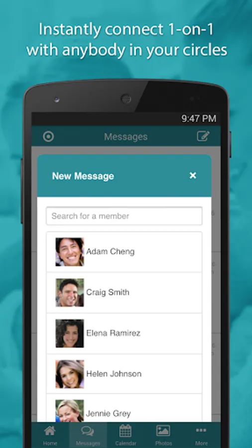ENABLE ONE-ON-ONE CONVERSATIONS. With SimplyCircle, your members can engage in one-on-one conversations with other group members, without needing to access their private contact information. For group members who don’t know each other well, that’s much easier than looking up an email address in a school directory or a club roster. Group members can message each other privately right from the app, and be instantly notified when they get a new message. If the recipient of their message does not have the SimplyCircle app, he or she will receive an email – so no communications ever get lost.