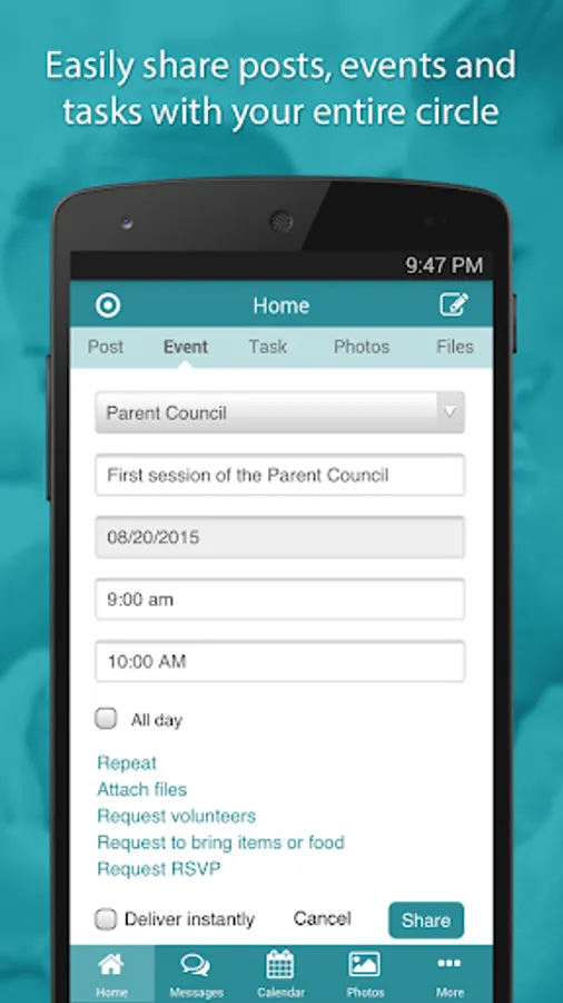 SimplyCircle (formerly SchoolCircle) offers teachers, principals, PTA leaders, scout leaders and others a free, safe and simple way to communicate with their group. Group leaders can send updates, create events and tasks, request volunteer signups, and share documents and photos. And group members can engage socially, both with group leaders and with each other. All communication stays private to the members of the group, and only group leaders can see the contact information of the group members. SimplyCircle saves you time: You only need to create an event or a task once, and all reminders will happen automatically. SimplyCircle drives higher engagement: Your group members can sign up to volunteer, or share photos with other group members, right from their phone. As a group leader, you have complete control over who is in your circle, and what content is posted to your circle. As a group member, you see all of the communication from all of your circles consolidated into a single convenient and private dashboard, which you can access from anywhere, on any device. The web and the app are always kept in sync – any updates on one immediately show up on the other.