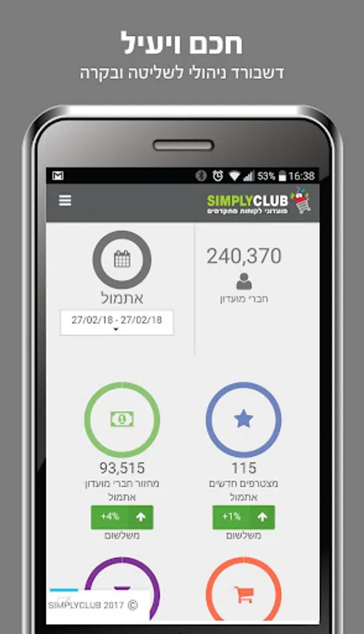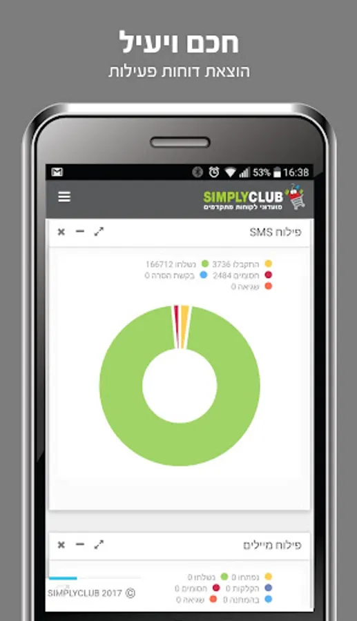the marketing, the SMS and Email delivery and the Reports. The SimplyClub system has interface with several cash register companies, web sites, facebook pages and end user applications.