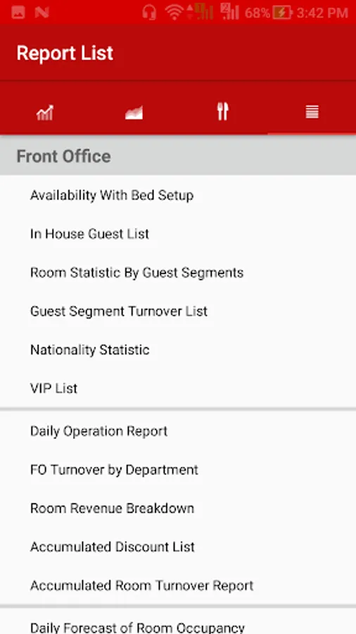 - Front Office Reports List