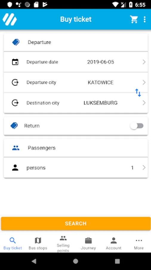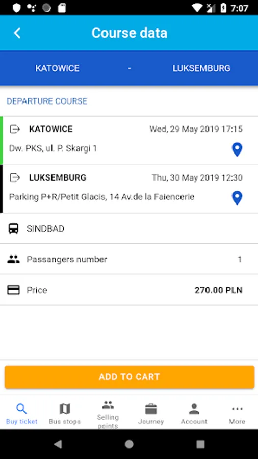 BUY TICKET - fast access to the network of connections along with the location of the stops on the Google map. The application offers Sindbad coach connections to more than 700 cities in Europe. In addition, it is possible to purchase a ticket with tourist insurance, based on direct online payment as part of an intuitive and integrated purchase process.