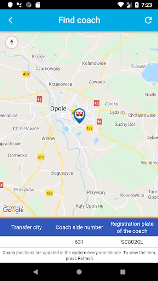 - Information about the coach number, current location and interchange location,