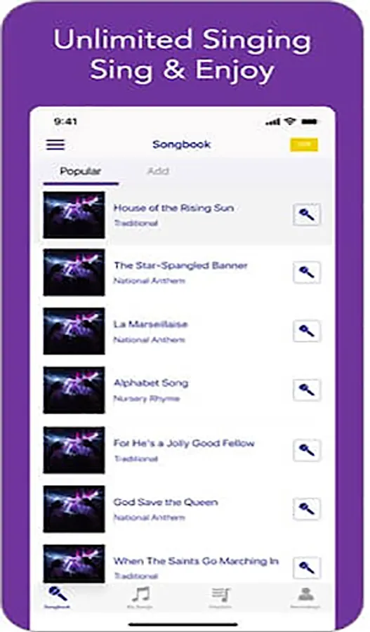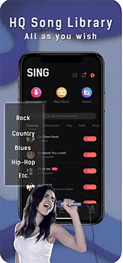 Singing app, music discovery, vocal enhancement, duet singing, group performances, virtual competitions, personalized recommendations, recording and editing, social media sharing, interactive community, daily challenges, karaoke mode.