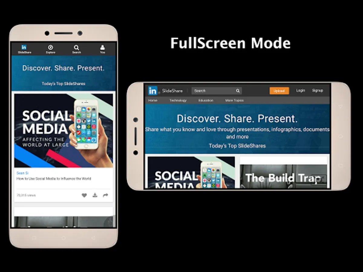 FullScreen mode for better browsing experience.It also has fullscreen video player for better viewing experience.