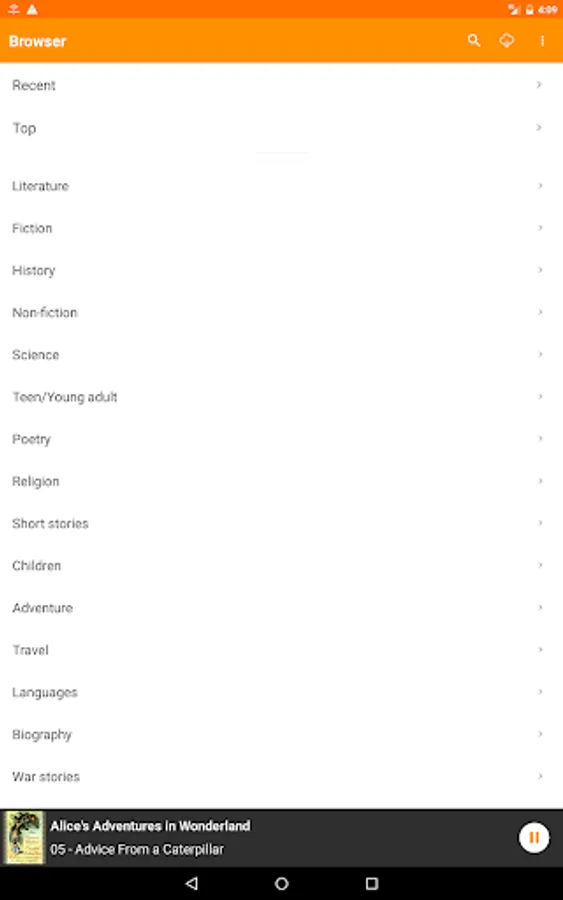 Each audio book can be streamed over the internet or downloaded for later use without any charge. SPN Audiobooks makes it easy to find the book you want. You can see the most popular books or search by keyword with title, author and genre. This app allows you to stop playback with a sleep timer and bookmarks the book you has been listened in recent book list. You can save and listen to as many books as you like by download.