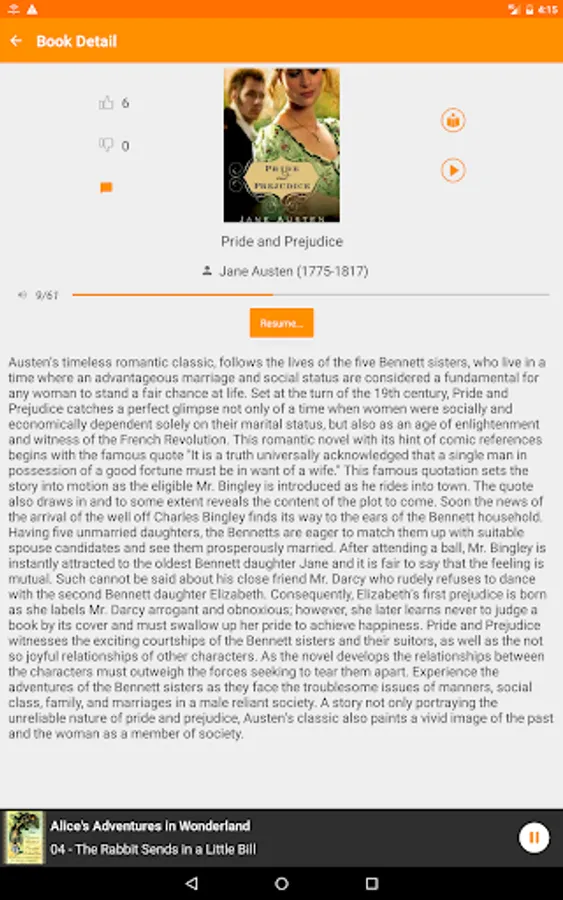Pride and Prejudice, Moby Dick, The Adventures of Huckleberry Finn, Alice's Adventues in Wonderland, Aesop's Fables, The Adventures of Sherlock Holmes, The Art of War, Dracula, Our Island Story, The Odyssey, Romeo and Juliet, Walden, Poems Every Child Should Know, and thousands more.