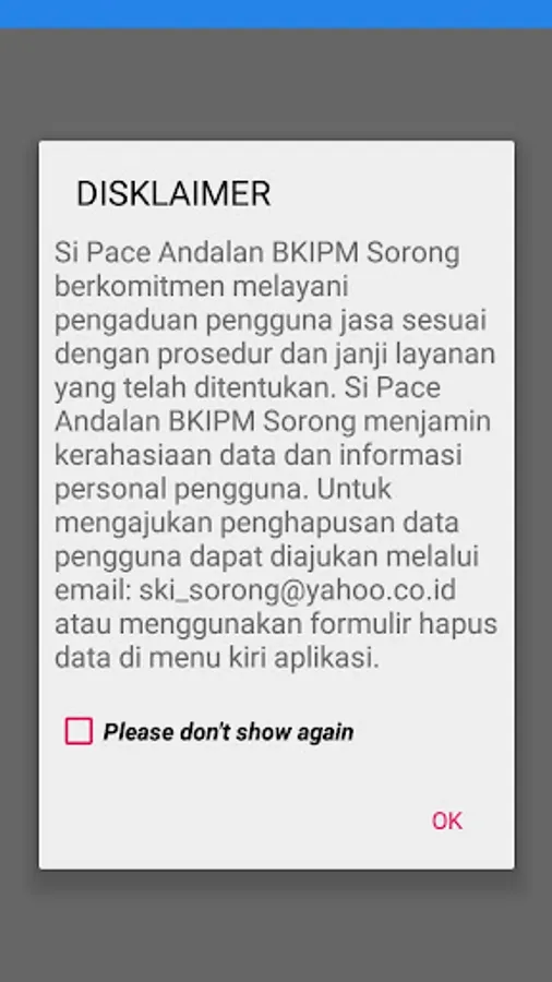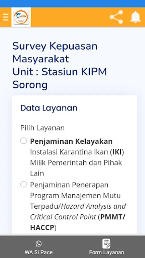 Si Pace Andalan (Quick, Actual and Transparent Information System) is a public service application for BKIPM Sorong which aims to make it easy for service users and stakeholders to interact to get BKIPM Sorong services, for example CKIB, PPK, HACCP, KUSUKA, and complaint service channels and request information labs and stuffing.