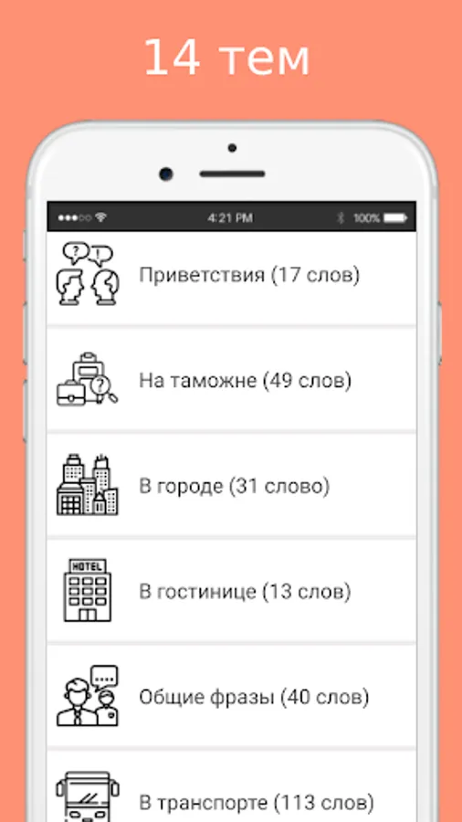 The application will allow you to take the first step towards learning the language, to interest you, and then it is up to you to decide whether to limit yourself only to colloquial phrases in Russian, or go further, studying grammar, vocabulary and syntax.