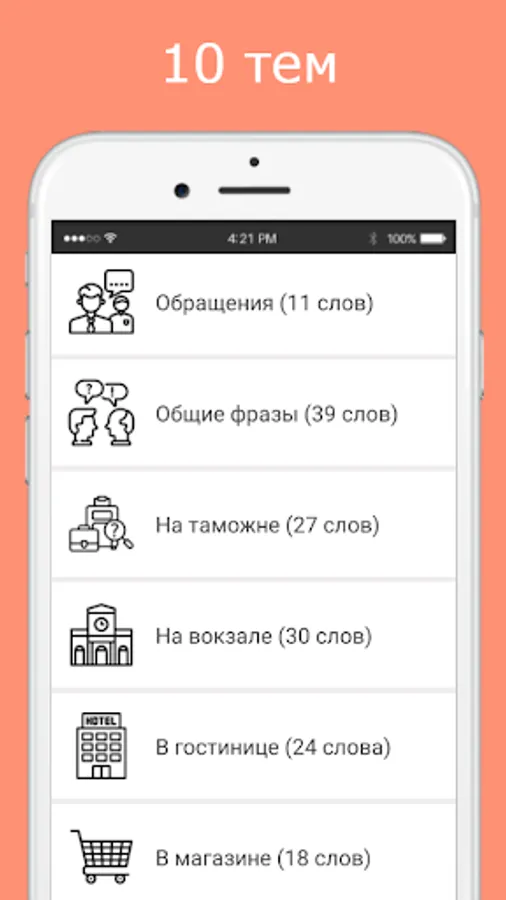The application will allow you to take the first step towards learning the language, to interest you, and then it is up to you to decide whether to limit yourself only to colloquial phrases in Russian, or go further, studying grammar, vocabulary and syntax.