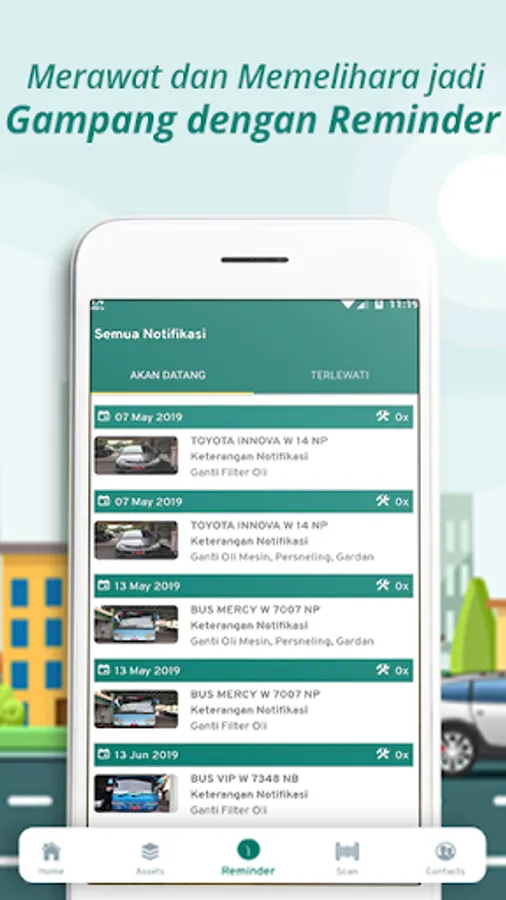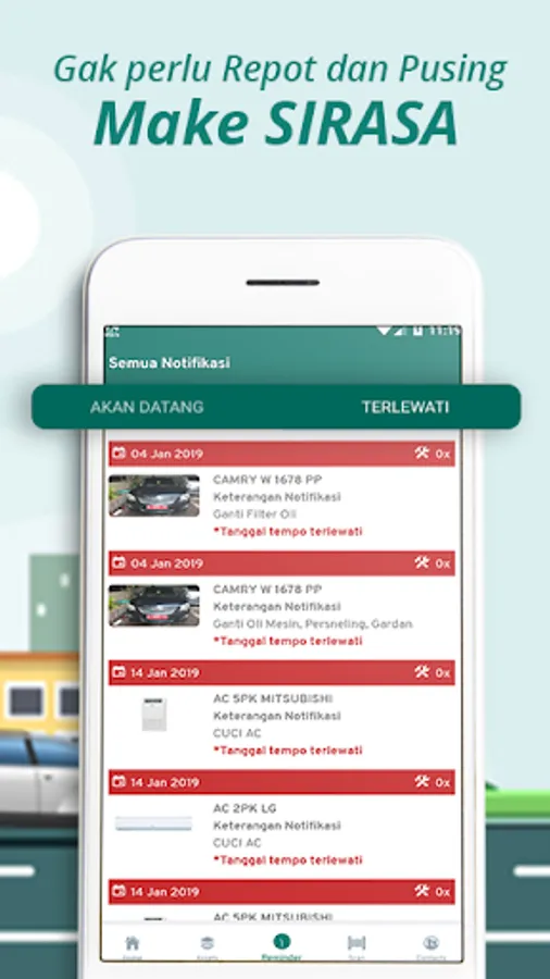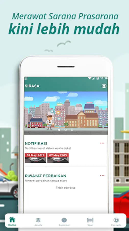 Recording maintenance of infrastructure can be in the form of building maintenance activities, machinery, vehicles, electronics (AC) etc., the use of this application can easily control when it is time for maintenance (automatic notification) and keep a maintenance history.