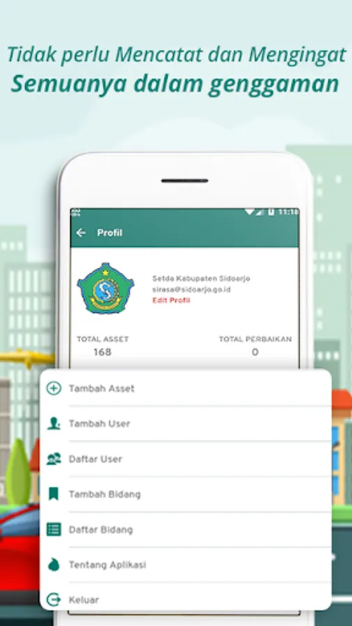 SIRASA is an application that is used to record the maintenance of infrastructure facilities in the Regional Secretariat of Sidoarjo Regency.