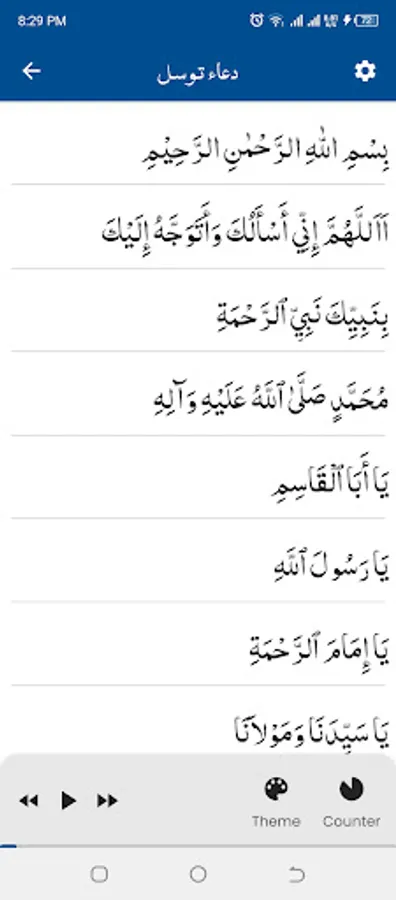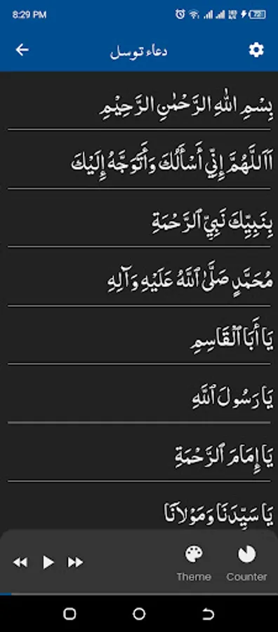 Dua e Tawasul (دعاء توسل) easy to use, offline app with a lot of free premium features.