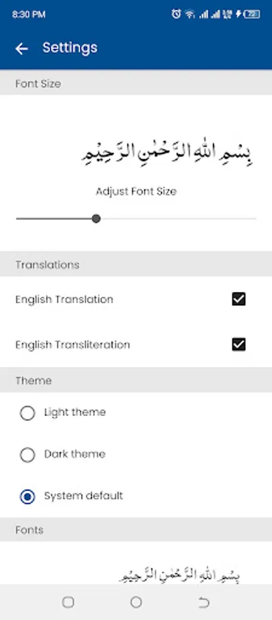 ⦁ Adjustable font size