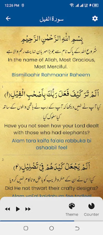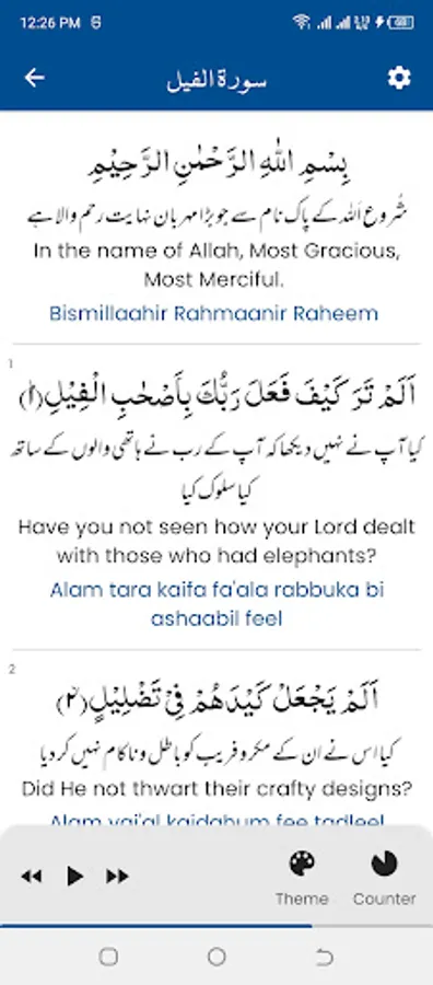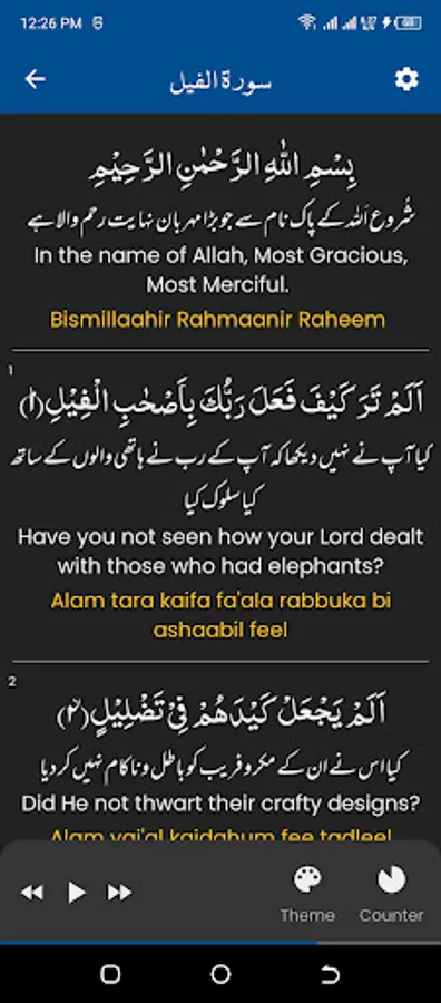 Surah Fil (سورة الفيل) easy to use, offline app with a lot of free premium features.