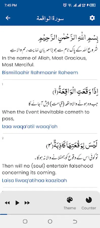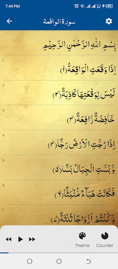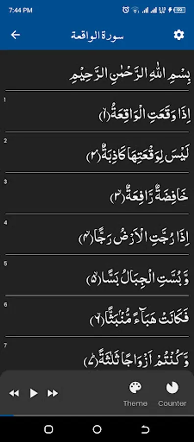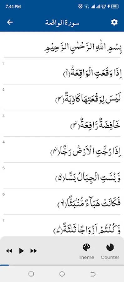 Surah Waqia (سورة الواقعة) easy to use, offline app with a lot of free premium features.