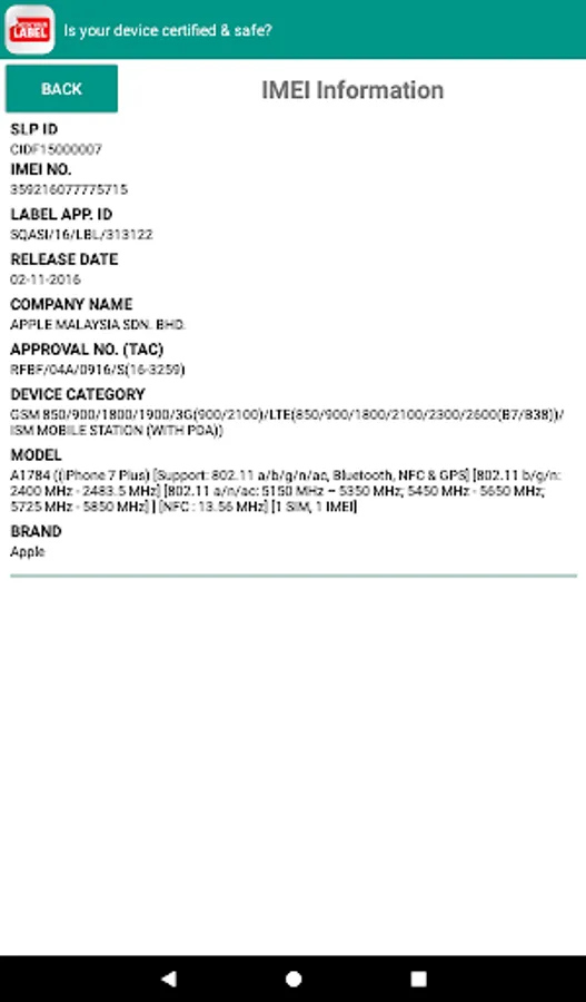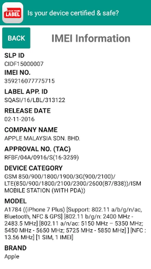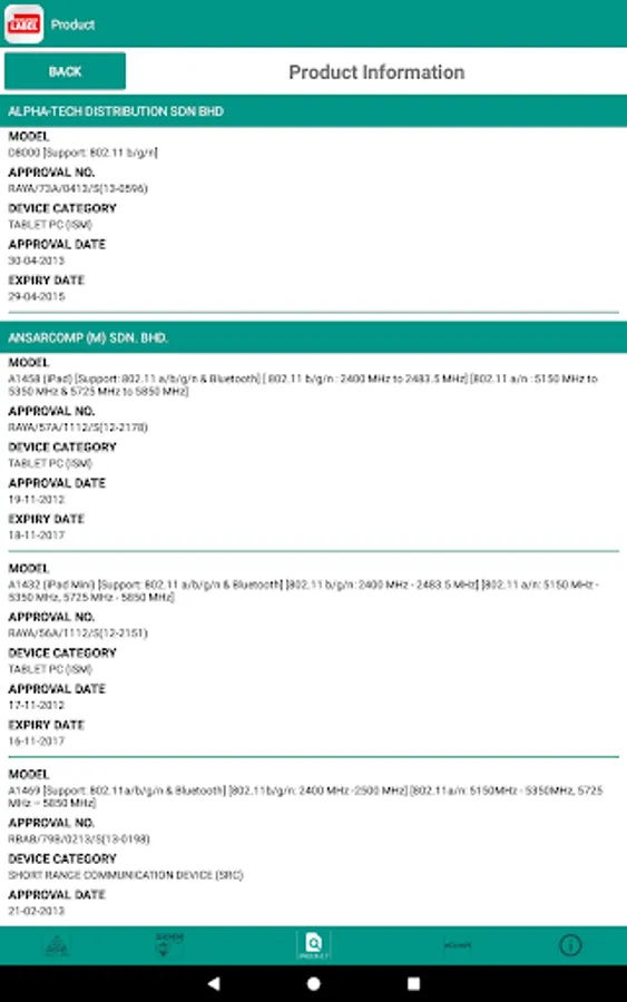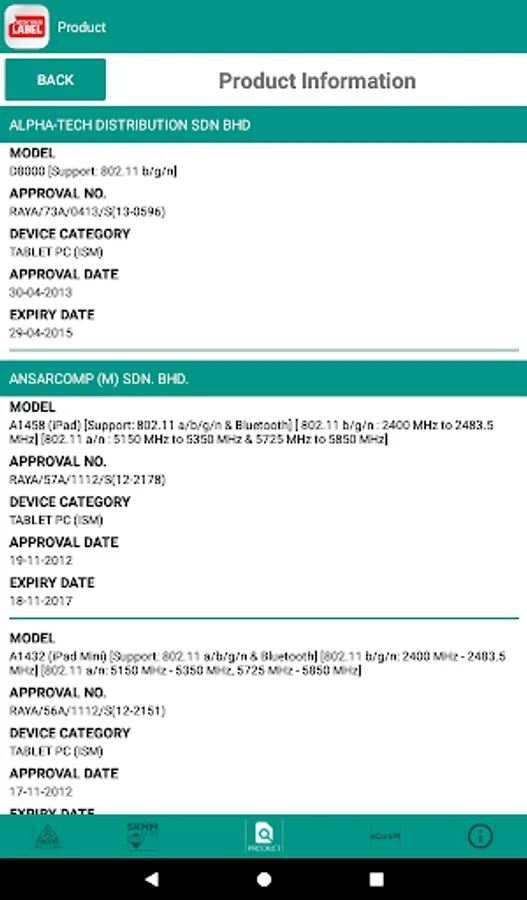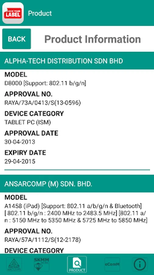 Through Check Your Label, user can also search for product information on any communication product in market regarding model or company responsible for the product.