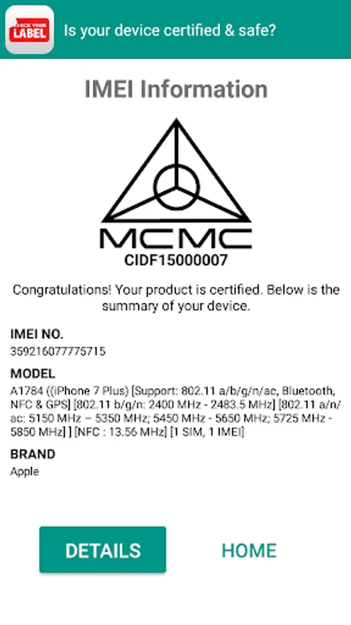 CYL is to verify whether communication & multimedia, and hybrid product has been certified by SIRIM QAS International, using unique valid IMEI number or product serial number or label serial number.