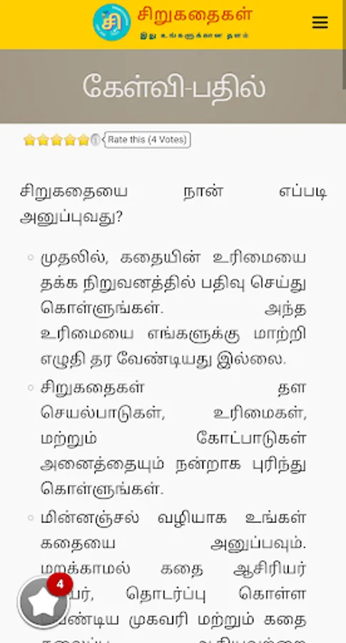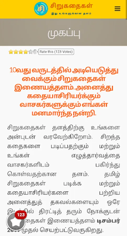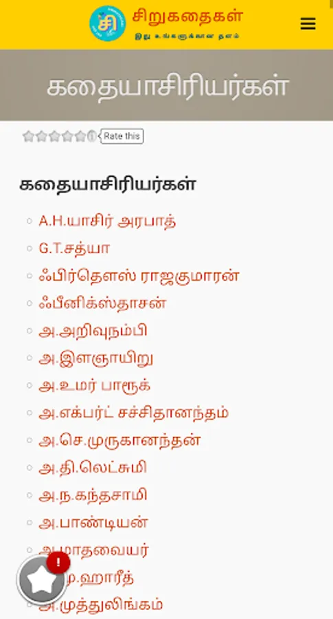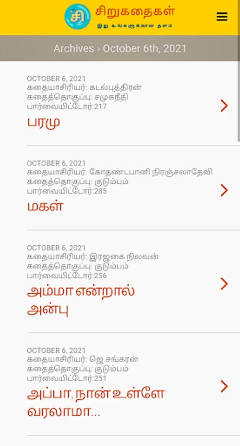 பிரபல எழுத்தாளர்கள் எழுதிய சிறுகதைகள் மட்டுமன்றி புதிய எழுத்தாளர்களின் படைப்புகளையும் இங்கே காணலாம். இதுவரை 600+ எழுத்தாளர்கள் அறிமுகம் செய்யப்பட்டுள்ளார்கள். இங்கே 1500-க்கும் மேற்பட்ட எழுத்தாளர்களின் 12,500-க்கும் மேற்பட்ட சிறுகதைகளை இந்த செயலியின் வாயிலாக படித்து மகிழுங்கள்.