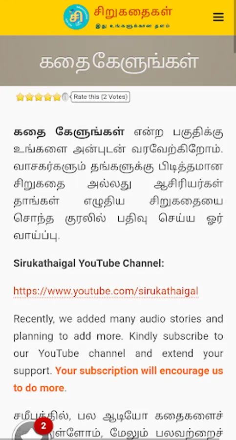 சிறுகதைகள் யூடூபில் (www.youtube.com/sirukathaigal) நூற்றுக்கு மேற்பட்ட கதைகளை ஆடியோ வடிவில் கேட்கலாம்.