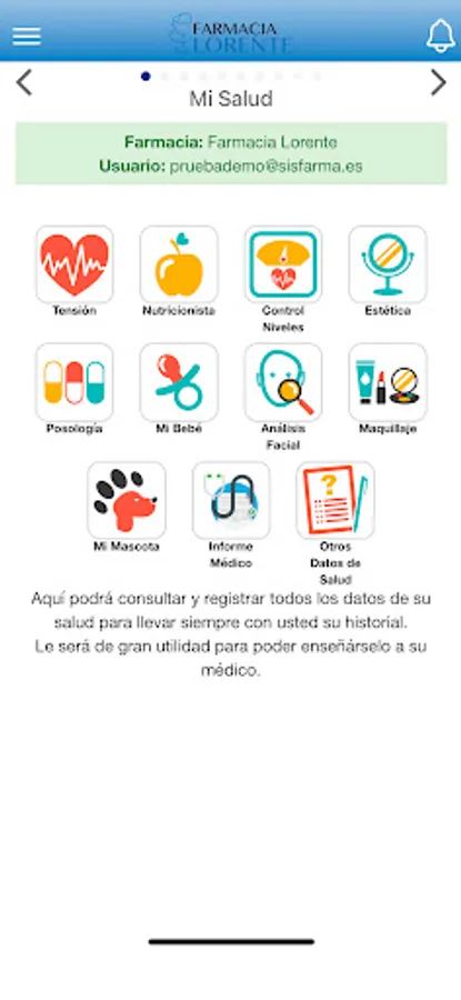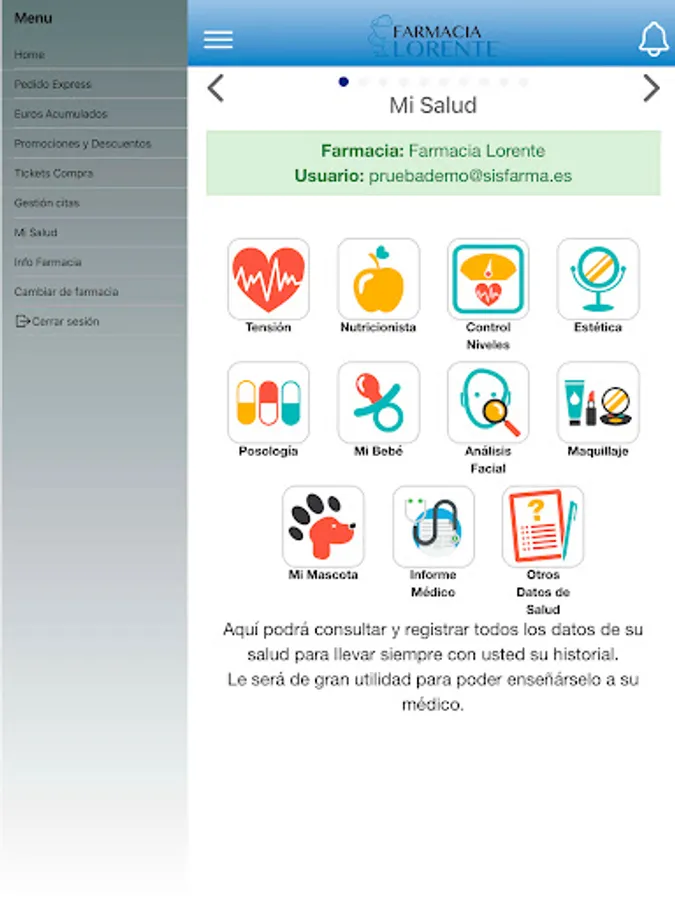 We put at your disposal the Farmacia Lorente App, where you can see all the offers, redeem promotions, sign up for interesting events at your pharmacy, you can check the prices of the products by reading the barcode, register your health data, consult your purchases, obtain discount coupons, manage your appointments, consult purchase history and many more things.