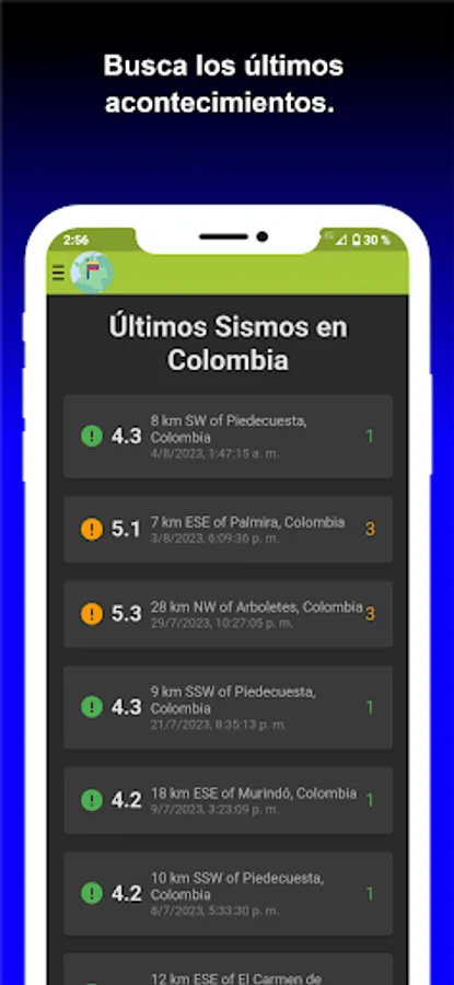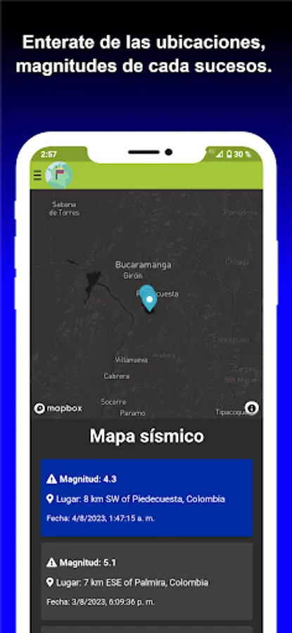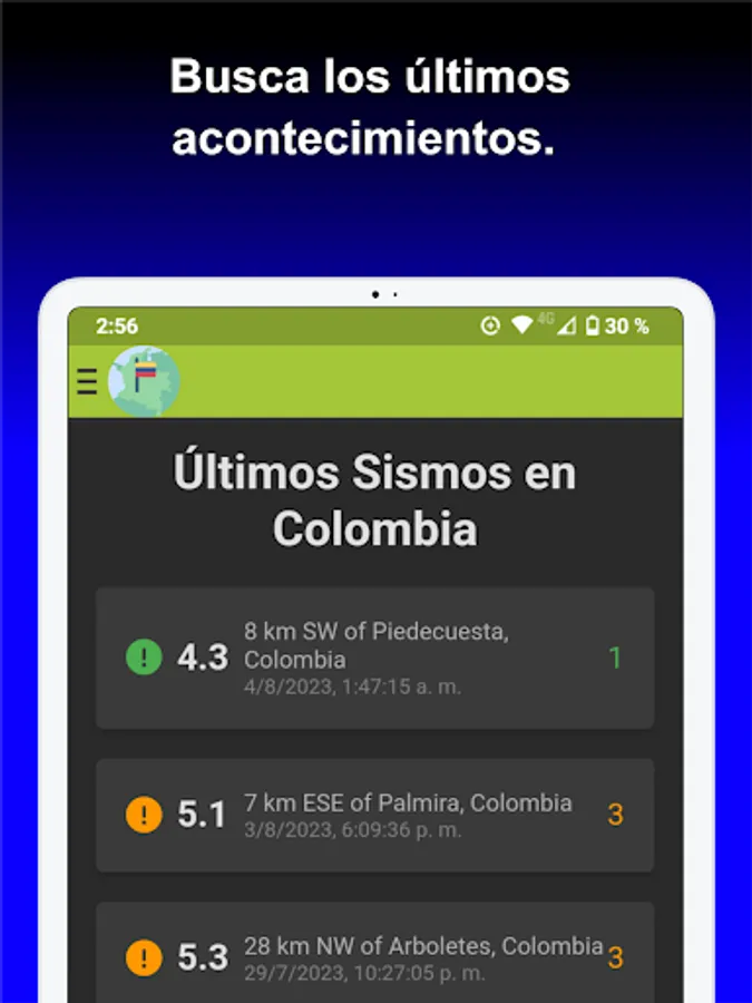 Get instant information about the latest tremors from the Colombian Geological Service.