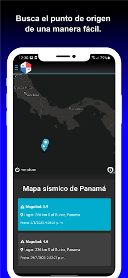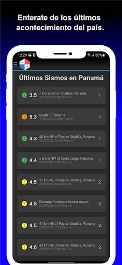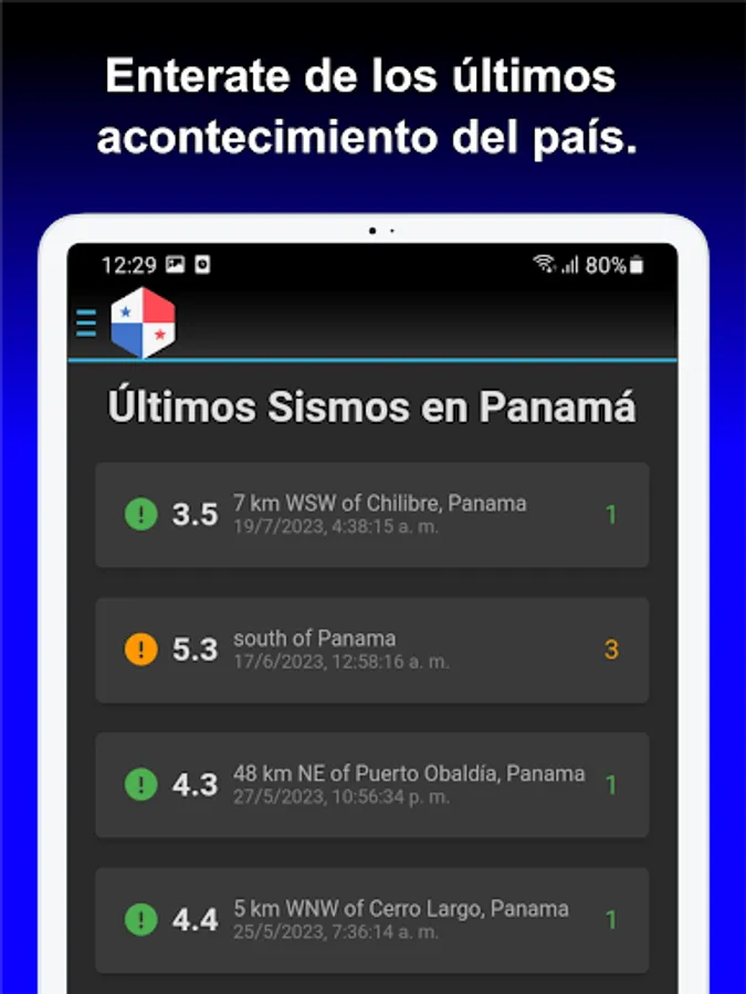 The app shows the latest earthquakes in the country in a list and on the iterative map.