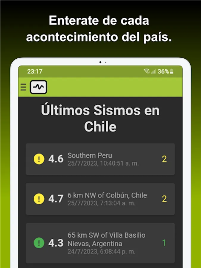 - The information corresponds to that published by the National Seismological Center of the University of Chile and the USGS Earthquake Hazards Program