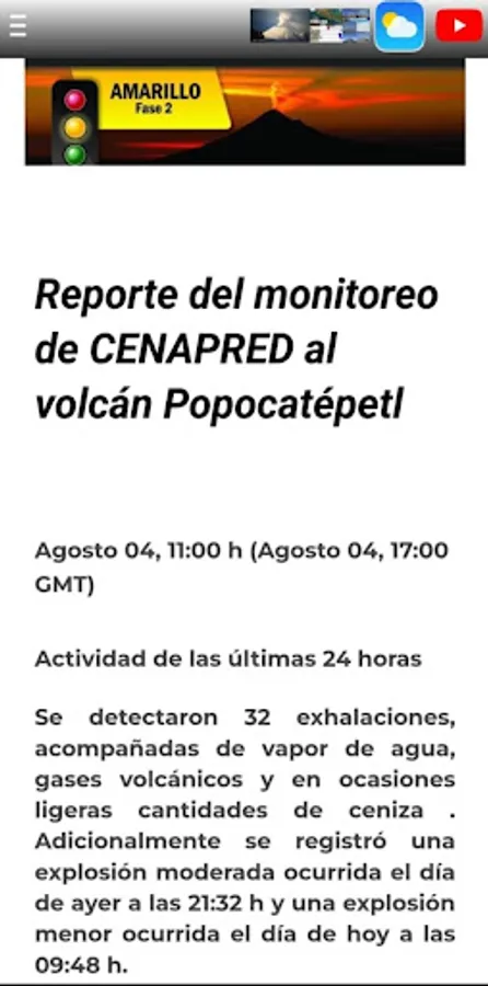 We Will Give Daily Report Of The Popocatépetl Volcano Of The Last 24 Hours, Access To Monitoring Cameras Towards The Popocatépetl Volcano, Earthquakes, Weather And More-24/7 365 Of The Year