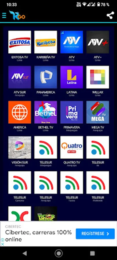 The tv peru application allows us to watch live open television from peru as well as on demand, although in this second case we will also have some limitations and not everything will be available. The peru tv application is free and contains ads but it does its job well.