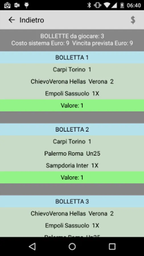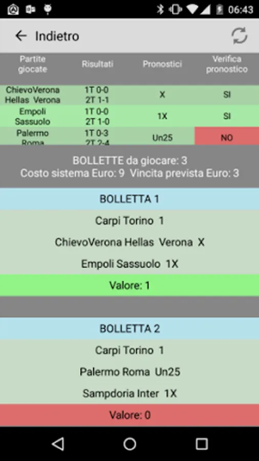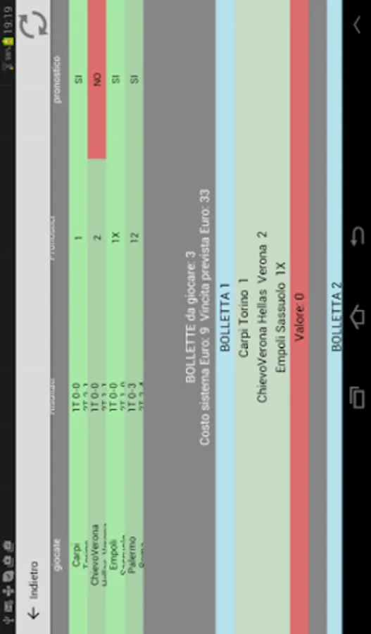 - Verification of predictions played in the system and related betslips, during and after the game LIVE.