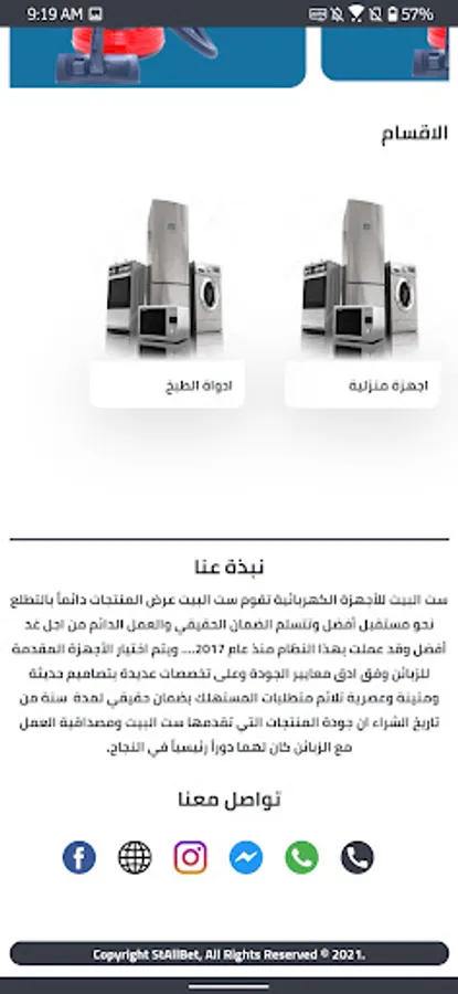 ست البيت للأجهزة الكهربائية تقوم ست البيت عرض المنتجات دائماً بالتطلع نحو مستقبل أفضل وتتسلم الضمان الحقيقي والعمل الدائم من اجل غد أفضل وقد عملت بهذا النظام منذ عام 2017.... ويتم اختيار الأجهزة المقدمة للزبائن وفق ادق معايير الجودة وعلى تخصصات عديدة بتصاميم حديثة ومتينة وعصرية تلائم متطلبات المستهلك بضمان حقيقي لمدة سنة من تاريخ الشراء ان جودة المنتجات التي تقدمها ست البيت ومصداقية العمل مع الزبائن .كان لهما دوراً رئيسياً في النجاح