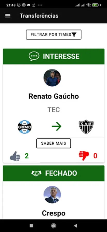 * Filter transfer by choosing your team from the heart;