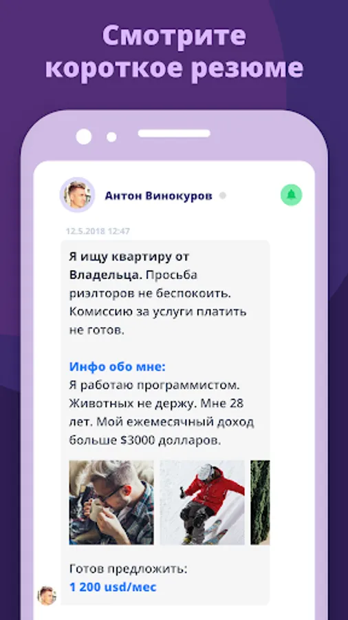 Get free money offers from reliable tenants. See a short summary and chat directly, one on one.