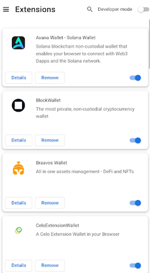 Mises Browser supports Chrome extensions on mobile phones. Users can download and run web3 extensions on Mises.