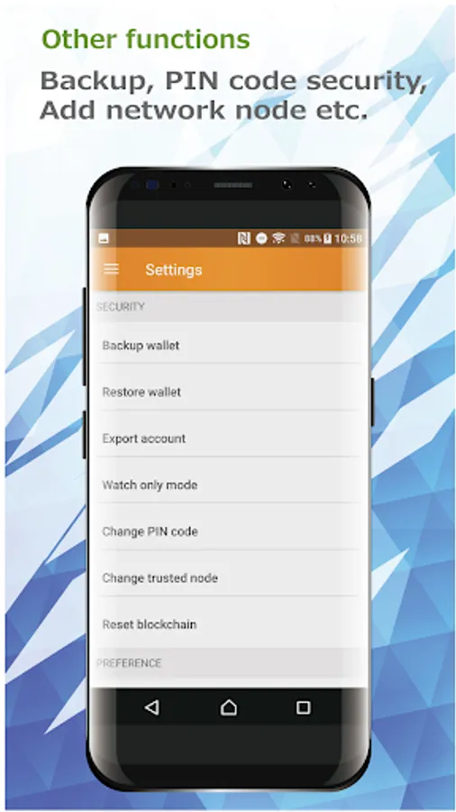 •そのほか、ウォレットのバックアップ、リカバリ、PINコード(セキュリティ)、P2Pサーバ登録