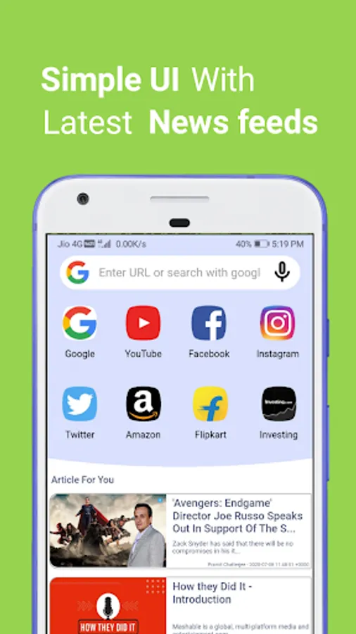 - Rocket Browser use its advance system which gives you really high speed experience.