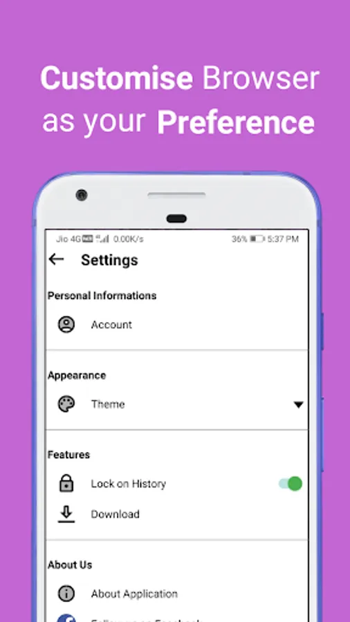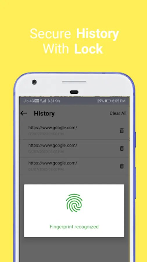 -Rocket Browser Provides you a amazing feature through which you can lock your history and than history can be opened only by entering password or scanning finger print.