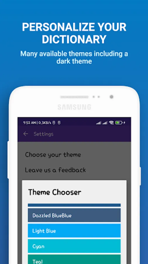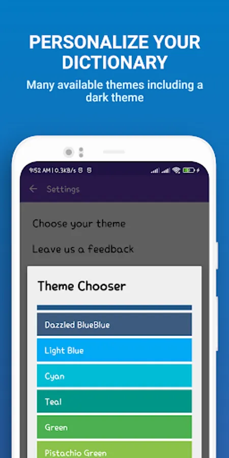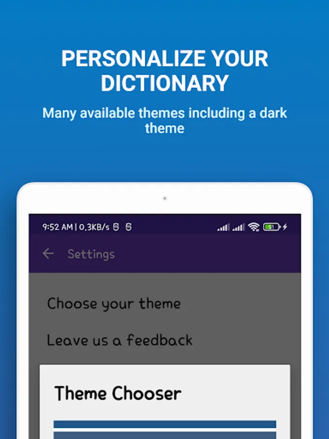 - Ability to share your favorite words on social networks, by e-mail or SMS;