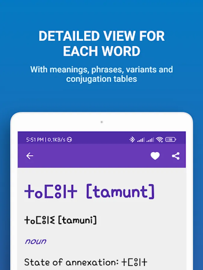 Discover the online official dictionary of Tamazight (Berber language). The app contains translations and vocabulary of all the Amazigh varieties and dialects.