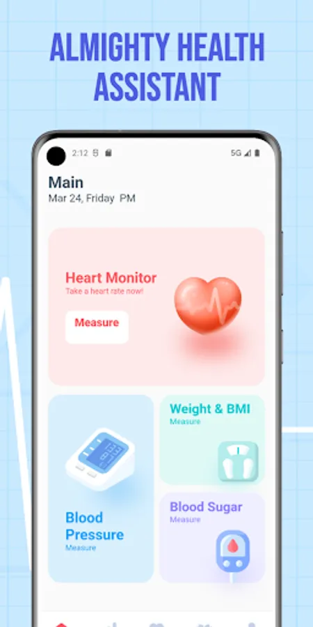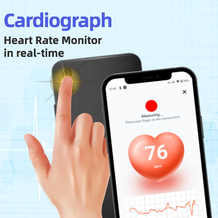 Place your finger on the camera of your smartphone, and the app will detect changes in blood density and use our algorithm that has been tested for months to obtain accurate heart rate.