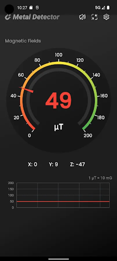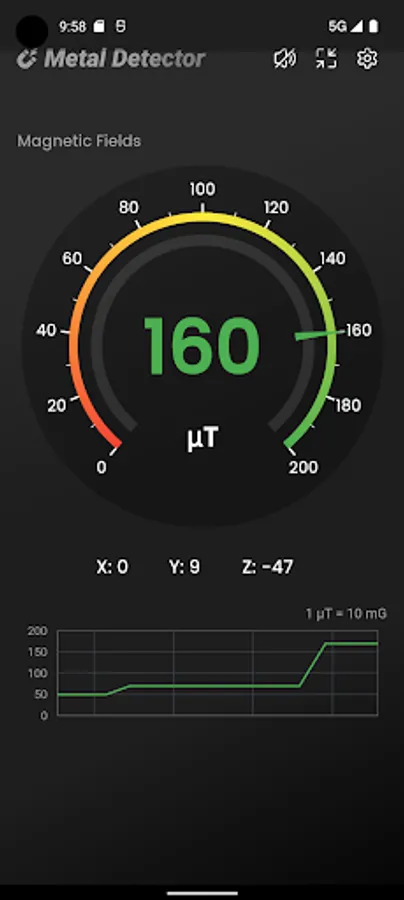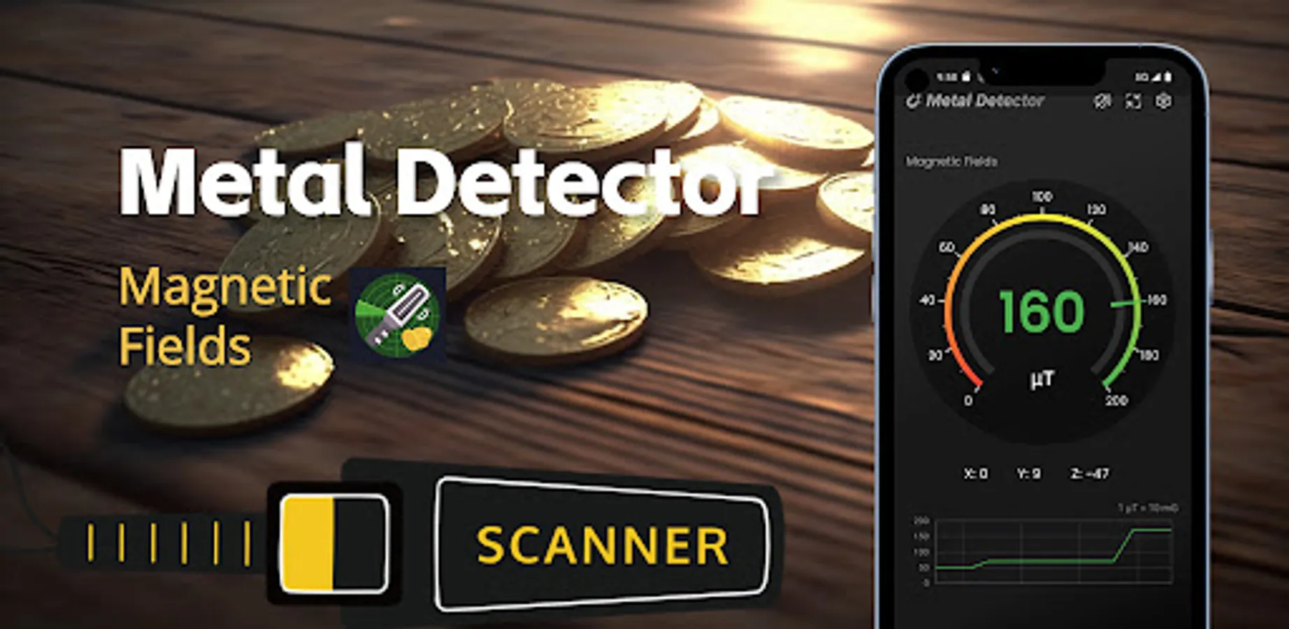 Metal Detector uses the device's magnetic sensor to measure the strength of the magnetic field and turns your device into a simple and convenient metal detector. It helps you measure the surrounding magnetic field, electronic waves, or metal (steel or iron). Once metal is present nearby, the reading value will increase. It can be used as a human body scanner, EMF meter, wire detector, pipeline detector, or even ghost detector.