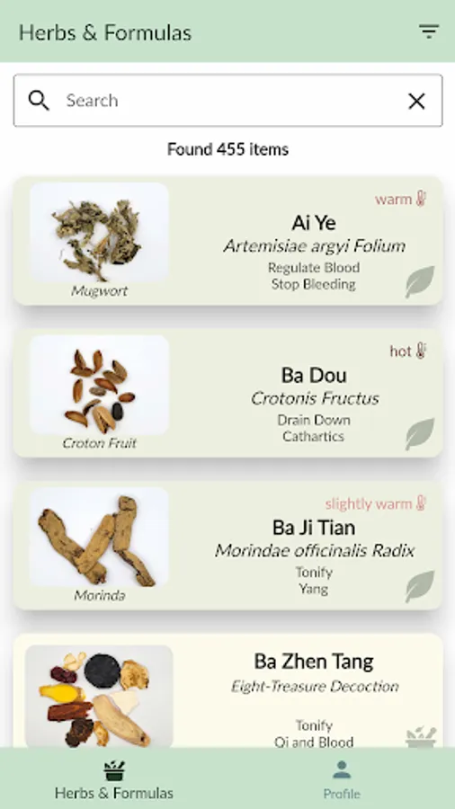 Herbapp lets you easily find and compare information about herbs and formulas used in Traditional Chinese Medicine. This app should not be used to diagnose or treat. Diagnosis and treatment should be performed by a licensed herbalist.