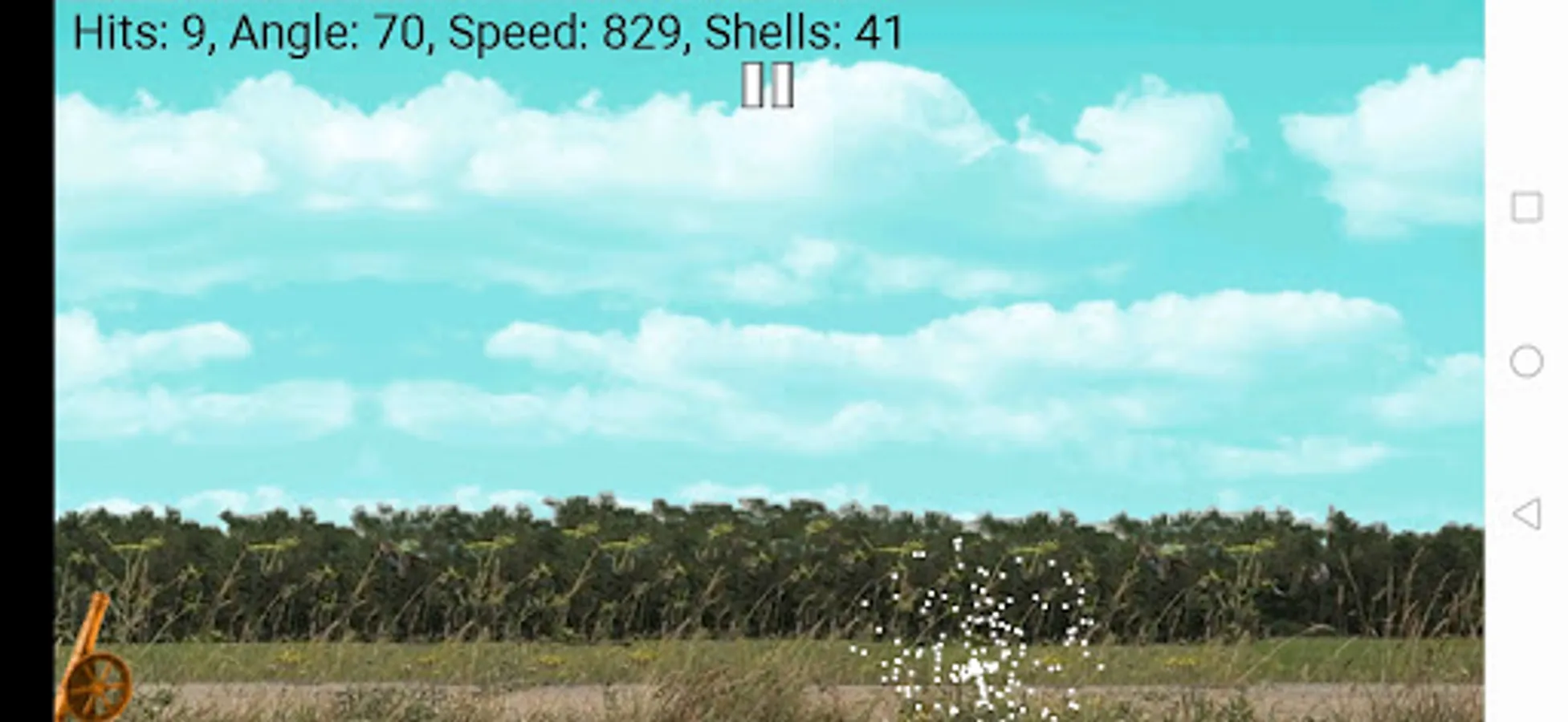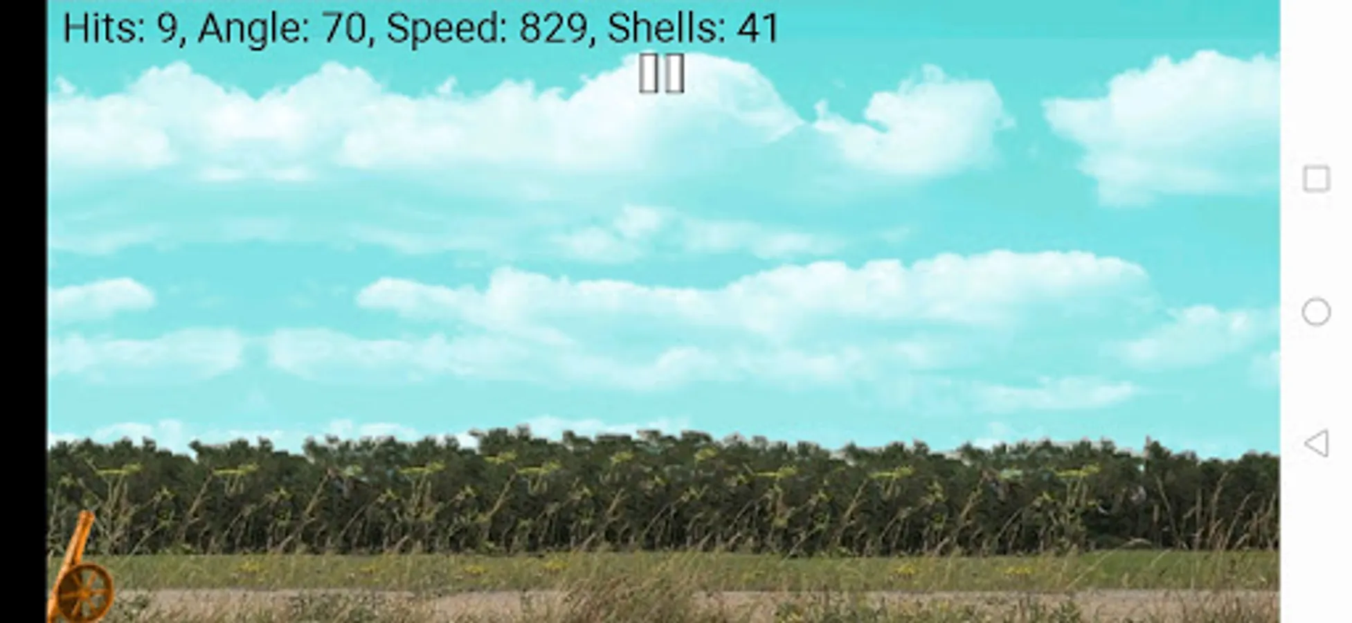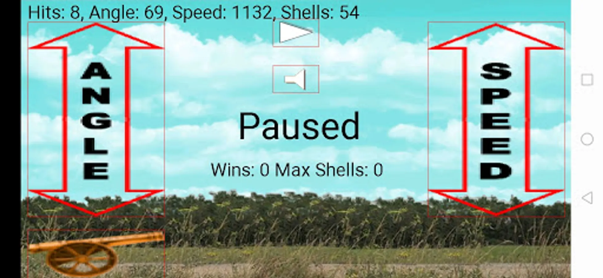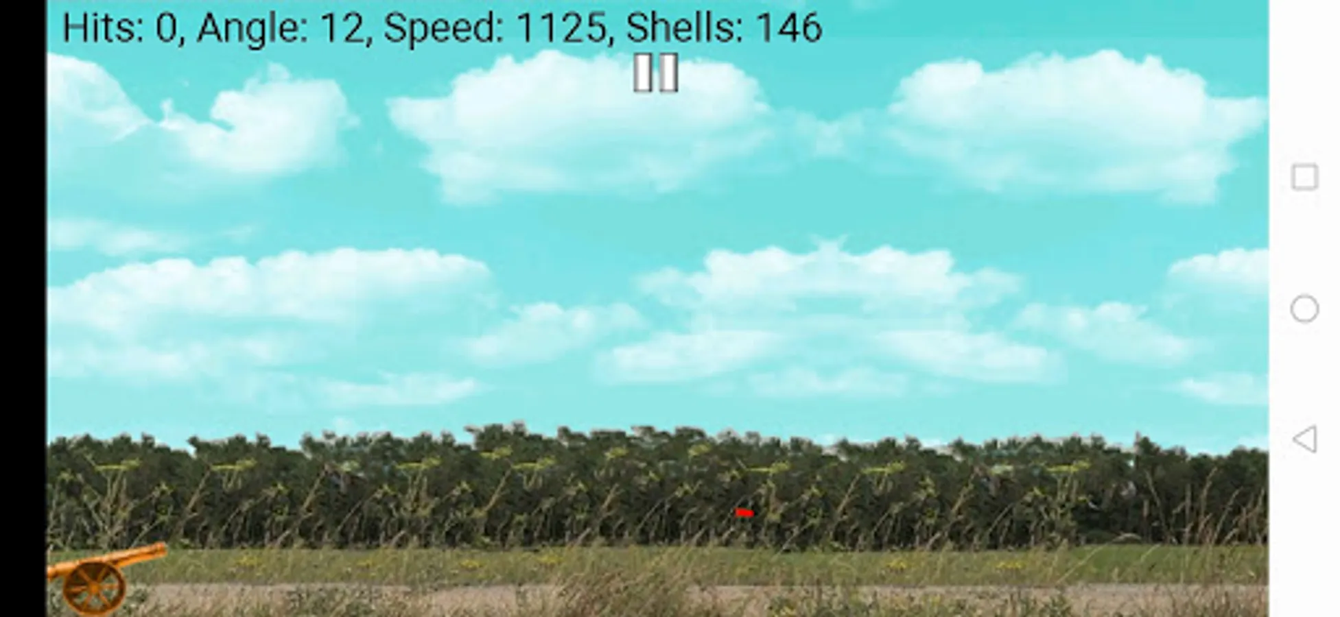 Cannon shell fire. Aim cannon, set shell speed then fire. Upon firing, the enemy will start travelling towards the cannon. You must hit the enemy before the cannon is rammed by the enemy vehicle, which doesn't have fire power. If you miss the target, adjust angle and speed then fire again before the cannon is rammed. You cannot fire another shell not until the shell hits the ground or the enemy; the enemy can start off screen in which case you are making a blind shot. Shell trajectory is governed by regular physics: initial shell speed, angle of fire and gravity, neglecting wind effect. Speed and angle controls can be set by either touching or sliding fingers in the respective control areas. You fire by touching the cannon. Randomly the enemy activates evasion mechanism, in which case you must approach the target from a high angle, putting the shell in the enemy's radar blind spot. Hitting the enemy wins a point and ramming the cannon loses a point. To win the game you must reach 10 points with a set of 150 shells.