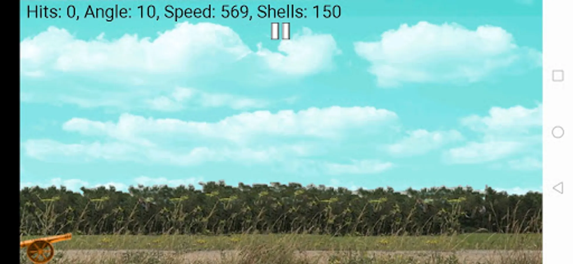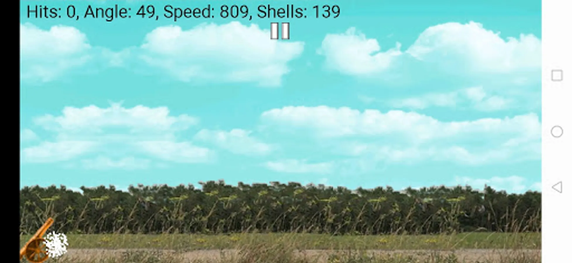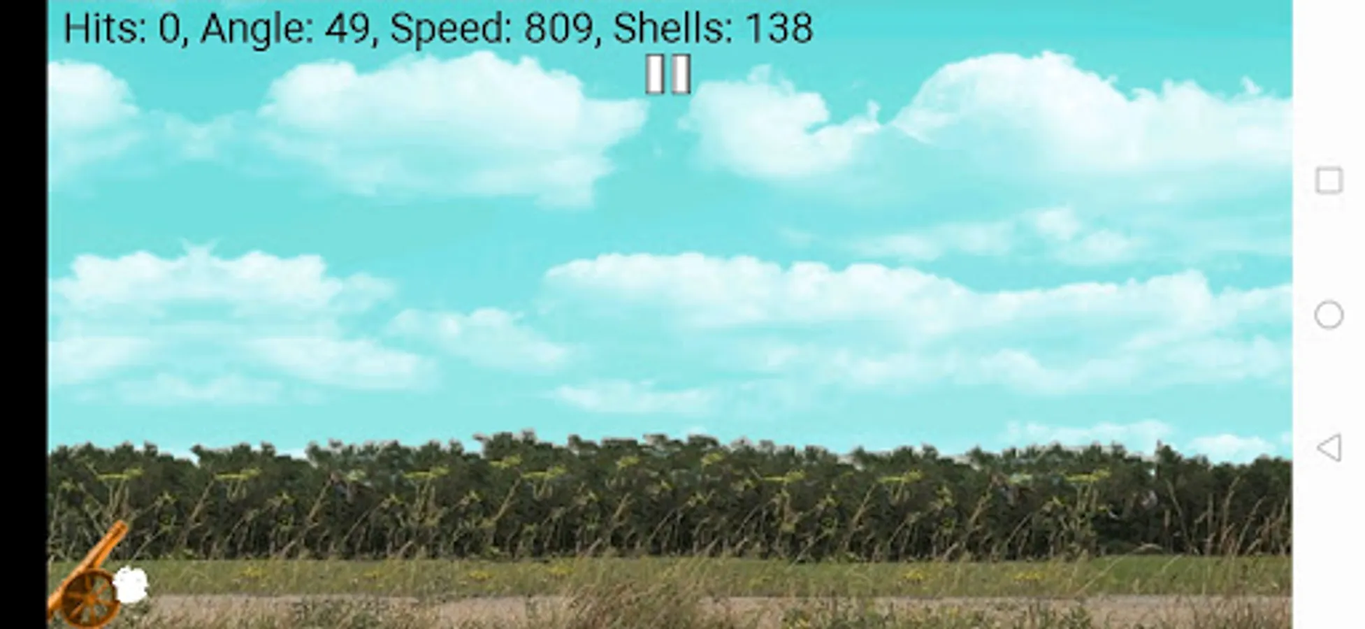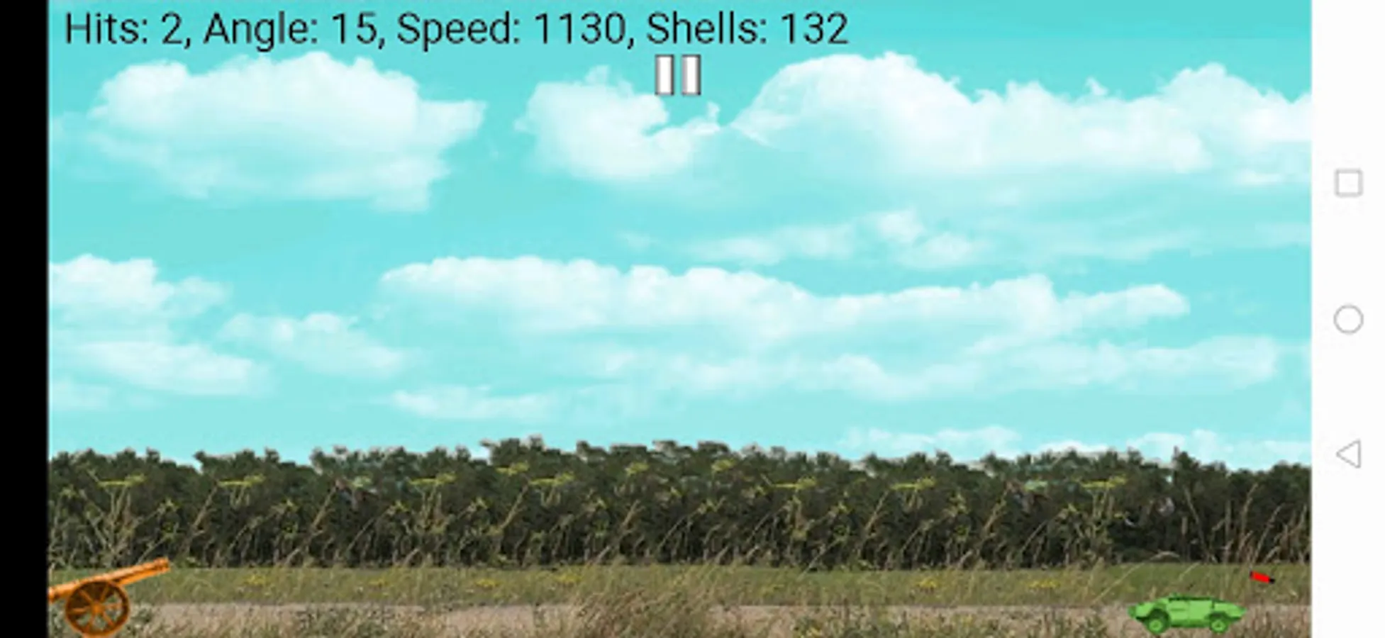 Cannon shell fire. Aim cannon, set shell speed then fire. Upon firing, the enemy will start travelling towards the cannon. You must hit the enemy before the cannon is rammed by the enemy vehicle, which doesn't have fire power. If you miss the target, adjust angle and speed then fire again before the cannon is rammed. You cannot fire another shell not until the shell hits the ground or the enemy; the enemy can start off screen in which case you are making a blind shot. Shell trajectory is governed by regular physics: initial shell speed, angle of fire and gravity, neglecting wind effect. Speed and angle controls can be set by either touching or sliding fingers in the respective control areas. You fire by touching the cannon. Randomly the enemy activates evasion mechanism, in which case you must approach the target from a high angle, putting the shell in the enemy's radar blind spot. Hitting the enemy wins a point and ramming the cannon loses a point. To win the game you must reach 10 points with a set of 150 shells.