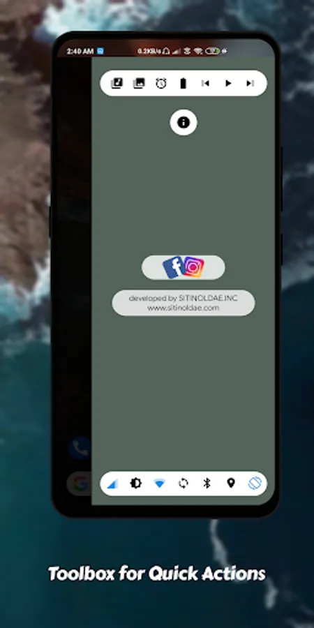 - Useful toggles on Q Launcher side screen: Data, Brightness, WIFI, Sync, Bluetooth, Location, Auto-rotation