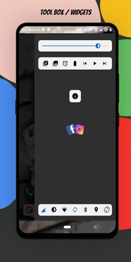 - Useful toggles on R Launcher side screen: Data, Brightness, Wi-Fi, Sync, Bluetooth, Location, Auto-rotation