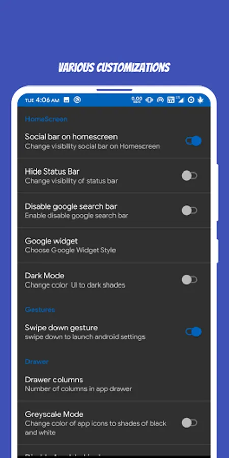 The launcher dynamics are unique but ruthless and build completely from scratch in kotlin.