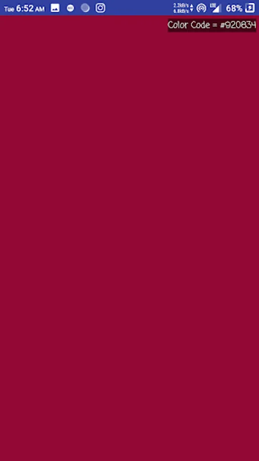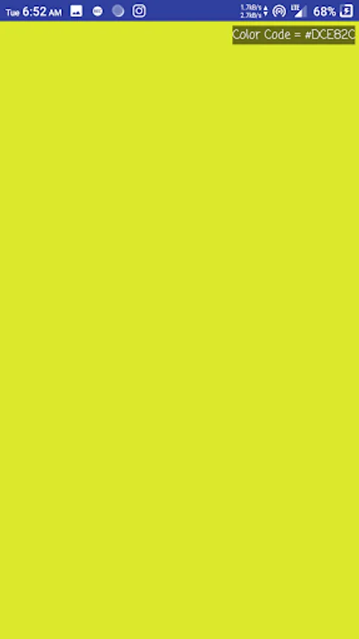 Launch app and click anywhere to generate random color , it's hex code will be shown on upper right corner of screen.
