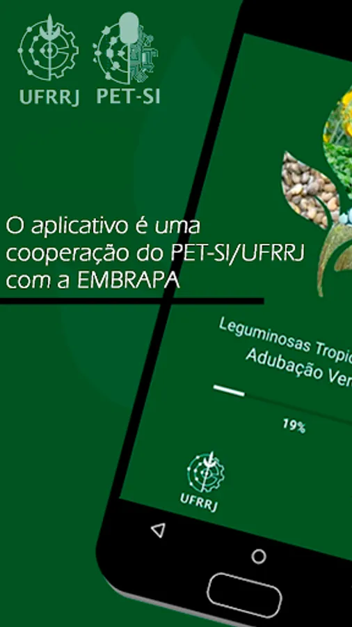 The Green Fertilizer application is completely free. It is the fruit of academic cooperation between PET-SI / UFRRJ members PPGAO / UFRRJ and Embrapa Agrobiology. It was fully developed by PET-SI / UFRRJ, with data from 25 species of legumes provided by researchers. The aim is to bring to the public quality information on the Green fertilization technique to provide a soil enrichment and improve planting techniques. The application has information geared to two types of public (farmers and extension). It can also be easily used by teachers, students and researchers.